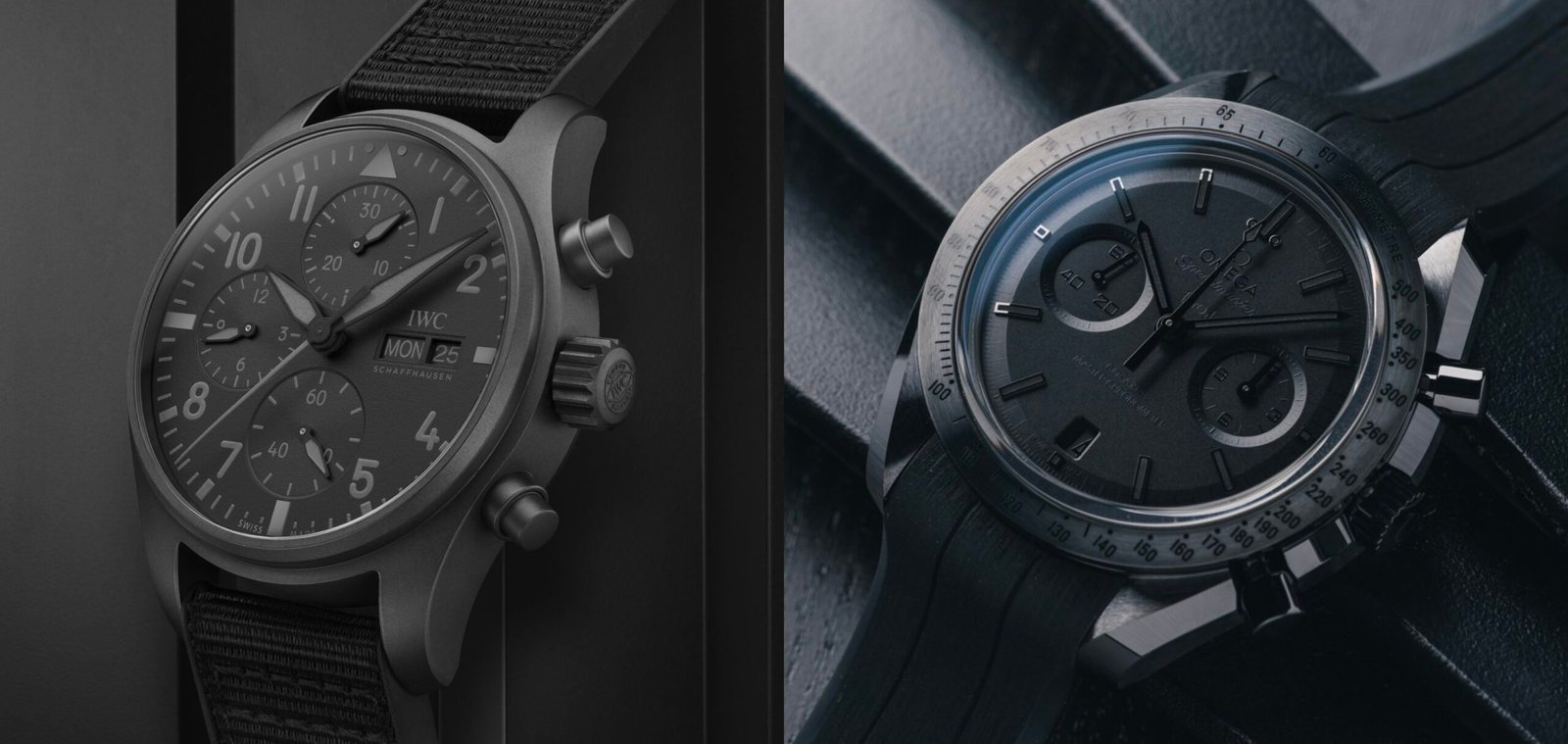 IWC Pilot’s Watch Chronograph 41 Top Gun Ceratanium vs. Omega Speedmaster Dark Side of the Moon “Black/Black”