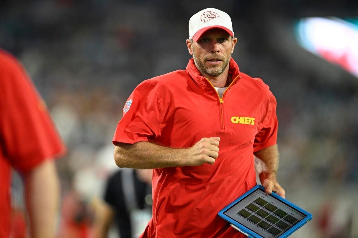 Kansas City Chiefs linebackers coach Brendan Daly leaves the field after the first half of a preseason NFL football game against the Jacksonville Jaguars on Aug. 10, 2024. (AP Photo/Phelan M. Ebenhack)