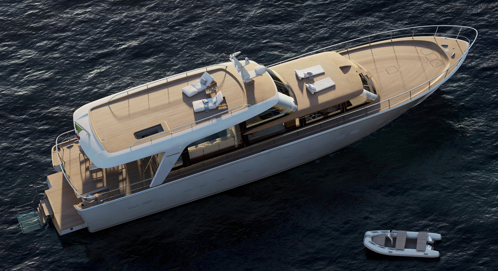 Complementing the electric aspect of propulsion, the Sanlorenzo SHE yacht comes with an all-electric custom 14-foot (3.95-meter) tender.
