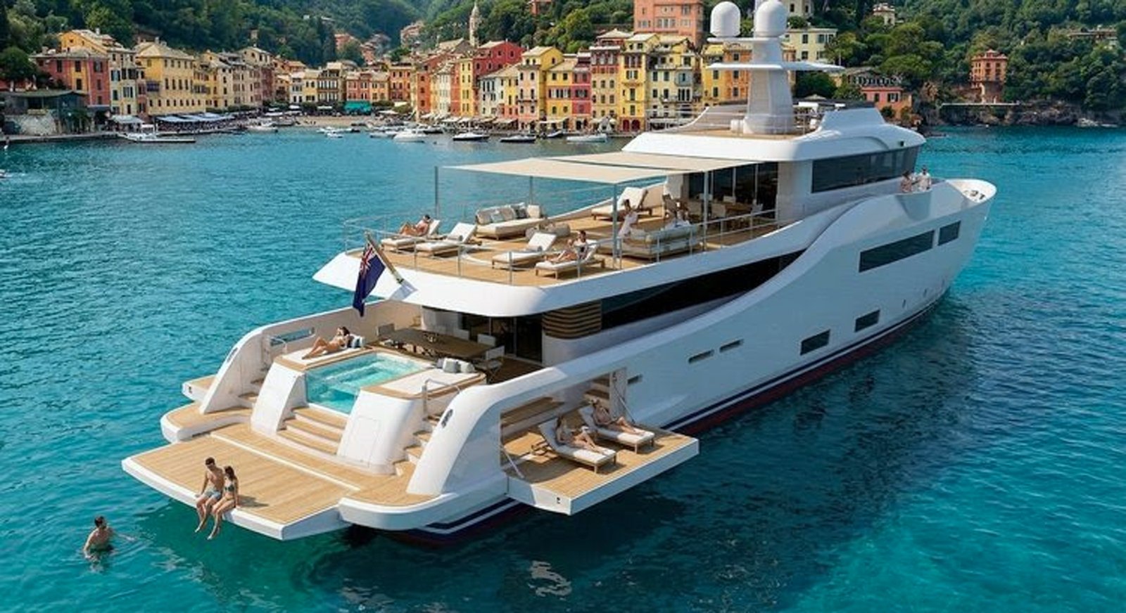In terms of onboard amenities, the project calls for popular features like a hot tub, reserved stowage for tenders and toys, and opening platforms to expand the beach area. Additionally, flex spaces like the elongated upper deck cater to different needs. Loose lounges, further with sunshades, make it an all-day sundeck. A dining table just forward complements the afternoon-long use, too.
