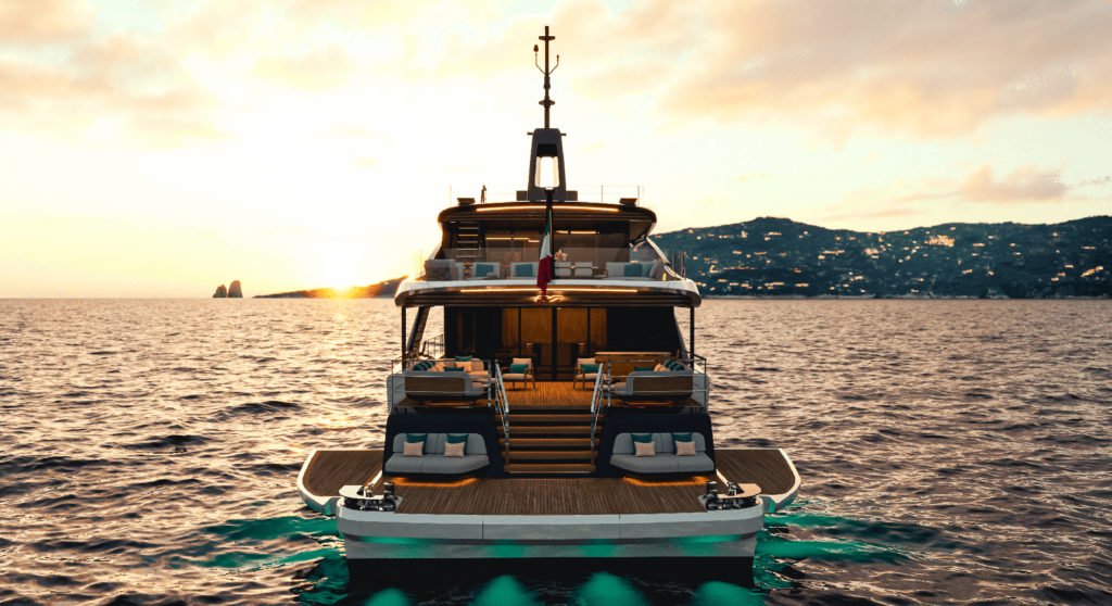 Finally, while the fast-displacement hull design makes the Mangusta GranSport superyacht series more efficient throughout the speed range, the Mangusta GranSport 38 yacht introduces a different propulsion system. For the first time, the brand is using Volvo Penta’s IPS. Top speed at half load should be a swift 20 knots, benefitting from the engines’ proven lower emissions, better fuel consumption, and reduced vibration. The podded propulsion requires less engine-room space as well, further adding to the space advantages of the new series.