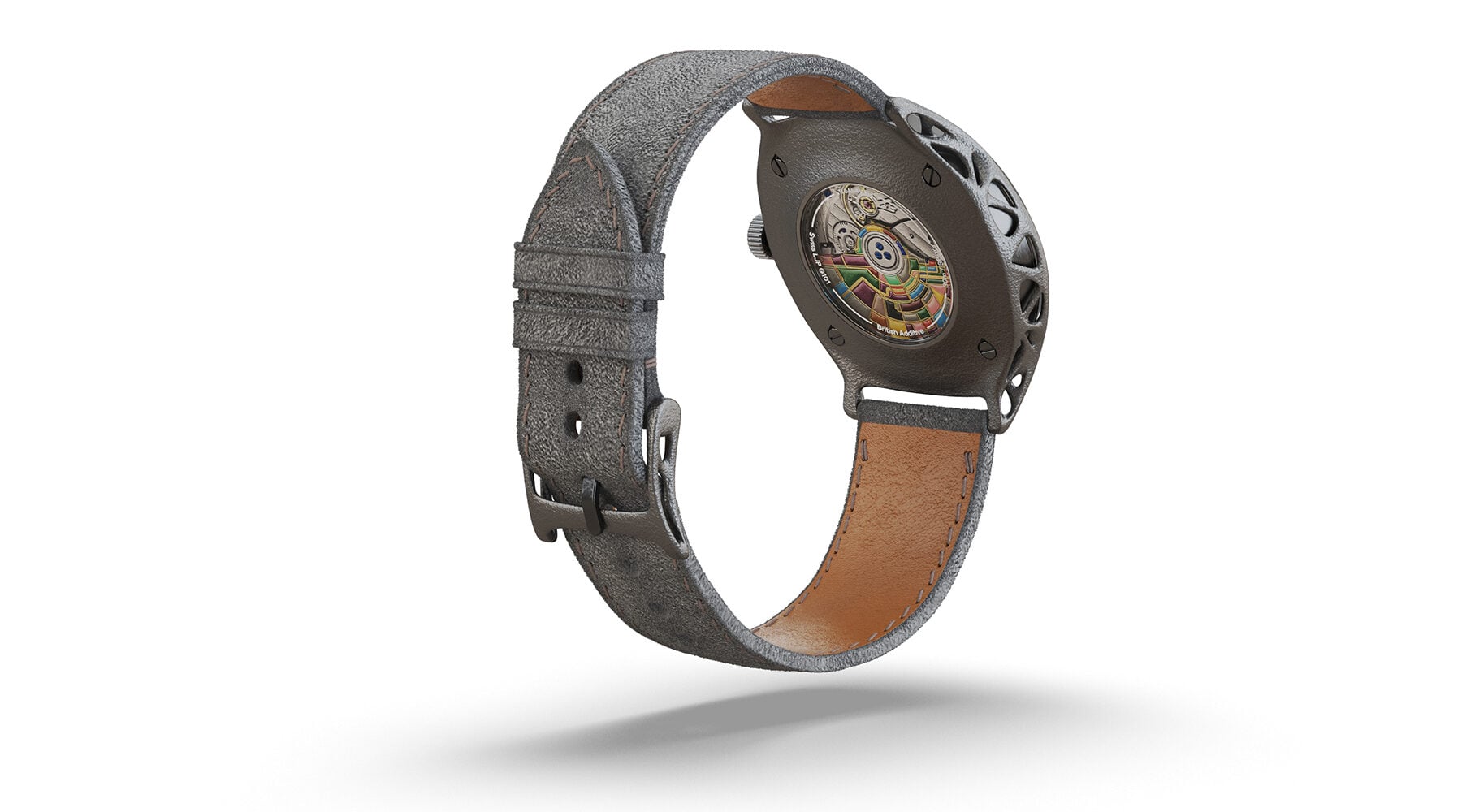 I covered Apiar’s 3D-printed Grade 23 titanium case with generative dials here. While the organic spider-web dial was interesting, it lacked artistic flair. It felt very industrial, shaped by science and mathematics rather than heart and soul. Chris Alexander creates a multi-colored dial with enamel paint to restore that human touch to design. The Apiar Gen 1.1 Underground is limited to three examples at £3,000 each.
