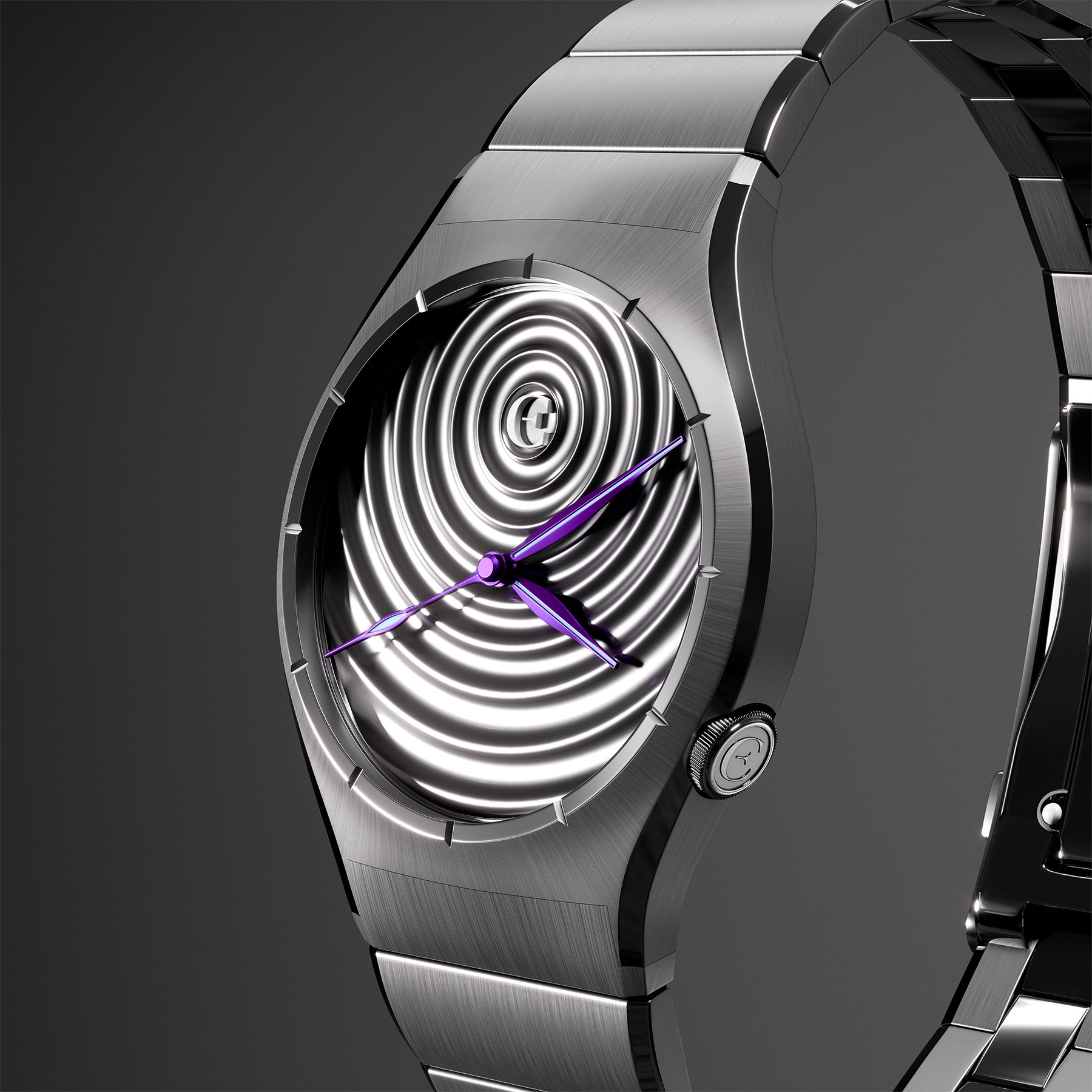 Edward Christopher not only brings a limited-edition model but also an entirely new model range. The Ripple is unlike anything Edward Christopher has made before, yet it still emphasizes stunning colors. The 38mm stainless steel case mixes elements of dress and sports watches with a captivating dial. The 3D mirror dial mimics rippling water radiating from the brand’s logo. Notches around the bezel provide the hour markers without disturbing the mesmerizing effect.