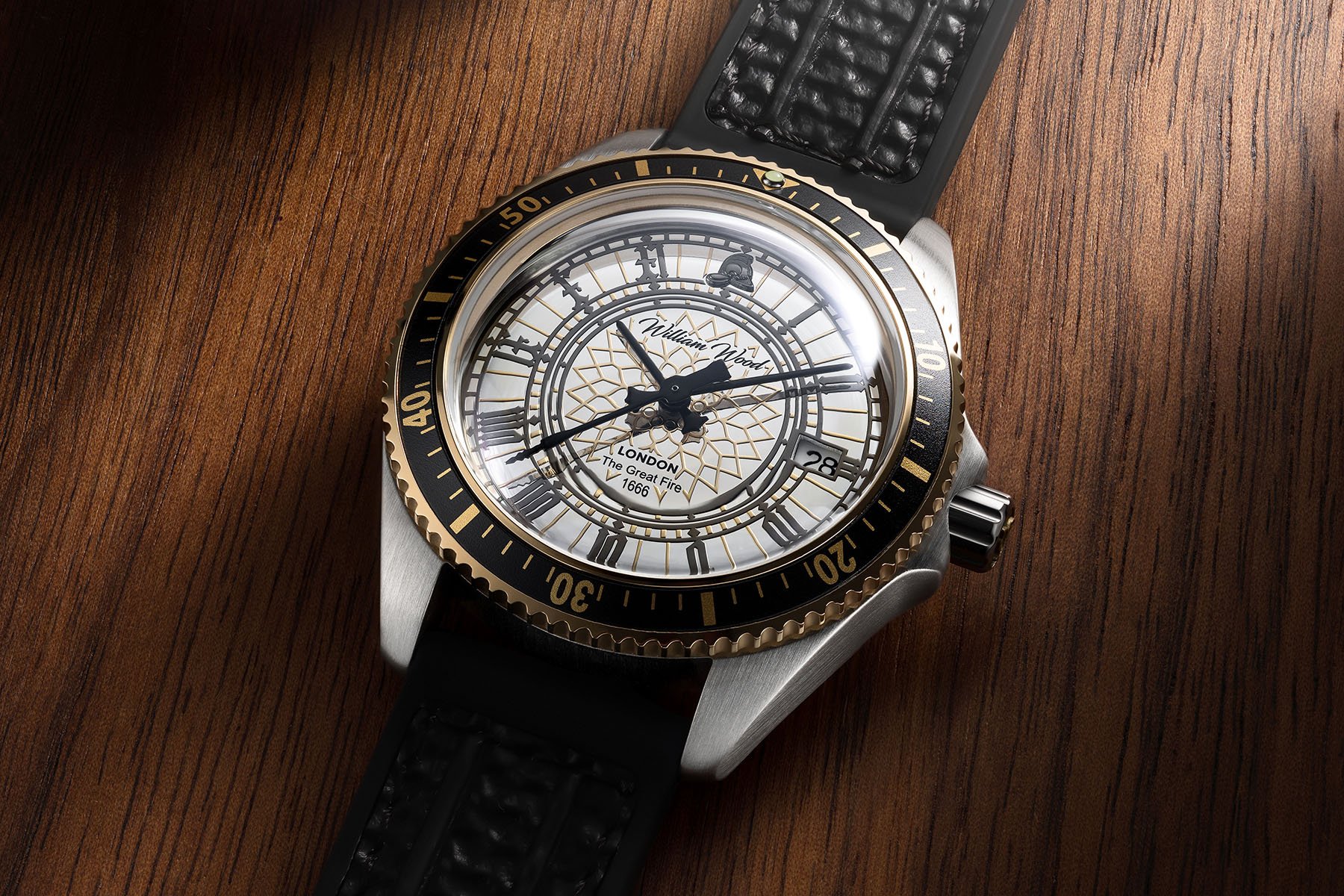 William Wood was a firefighter and the grandfather of Jonny Garrett, who founded the watch brand in his honor. For the latest limited edition for the British Watchmakers’ Day, William Wood launches the Great Fire of London watch. No, the watch doesn’t pay homage to the devastating fire of 1666; rather, it honors the brave people who volunteered to slow the spread and protect landmarks. The result of this devastation brought about the establishment of dedicated fire brigades.