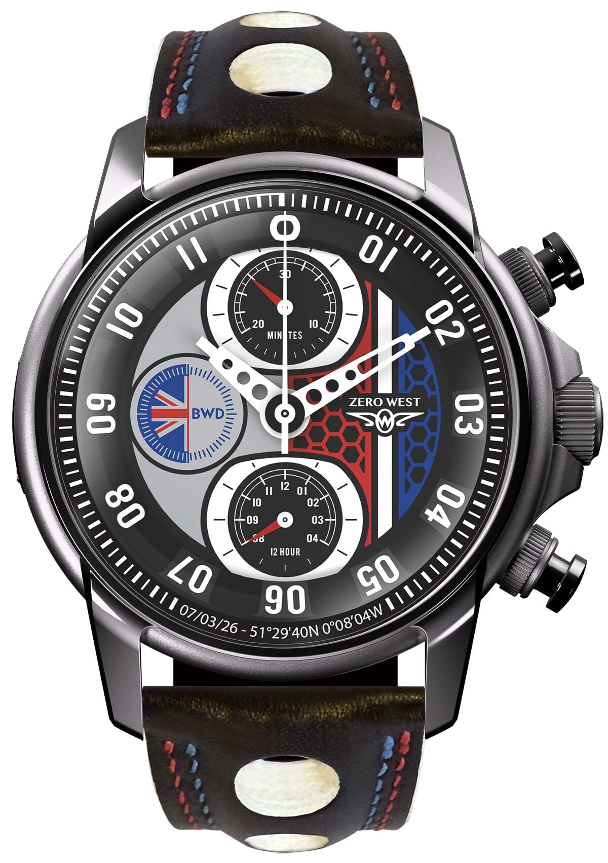 Zero West turns 10 this year and unveils its first-ever in-house dial from its new dial-making facility. After a few years of establishing the printing process, Zero West launches its Union Jack-inspired dial appropriately at the event. This new one-off chronograph from Zero West recognizes the work of the Alliance of British Watch & Clock Makers. Because of this, it features the Alliance logo along with rev-counter sub-dials representing its new hiOctane motorsport range. The dial also includes the show date and the location coordinates, reflecting Zero West’s motto, “A time and place.”