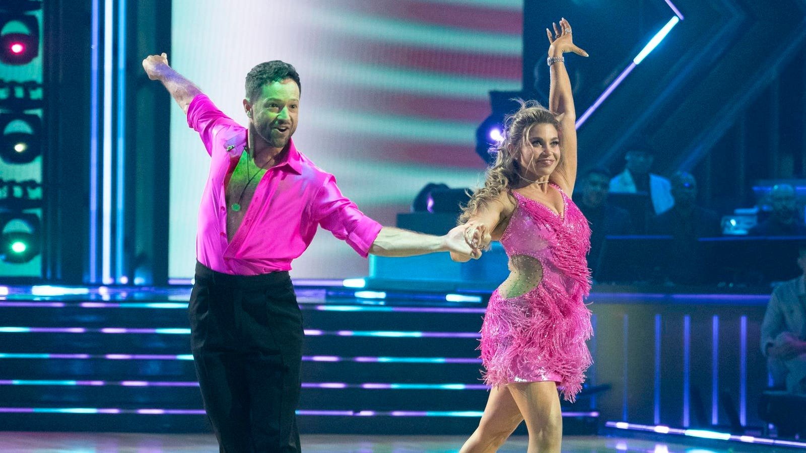 Jordan Chiles and Ezra Sosa performed a Jive to “Maniac” by Michael Sembello. Bruno jumped out of his seat and claimed that the Olympian was “going for gold.” He loved her focus, determination and the playful qualities in her dance. Carrie Ann compared Jordan to one of her favorite performers of all time: Tina Turner. Derek’s one-word description for the routine was “content.”
