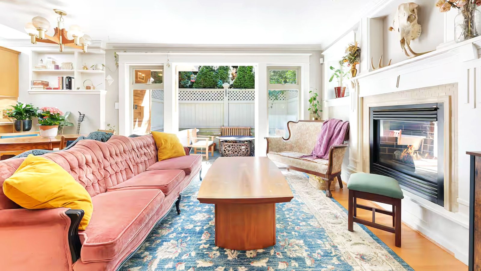 Sitting steps from sandy Locarno Beach, this luxury log home is worth making a trip for, with vaulted ceilings, a stunning stone hearth fireplace, and a piano plus karaoke machine indoors. Wood finishings and stone floors throughout create a rustic charm that feels like an upscale, remote cabin far from civilization, but the location will say otherwise, with easy access to the beach, tree-lined trails, cultural sites, and downtown shopping. With three bedrooms (two queens and a king), two large decks, a spacious dining room, two bright and cozy living rooms, and an upstairs loft, there’s plenty of space for everyone.