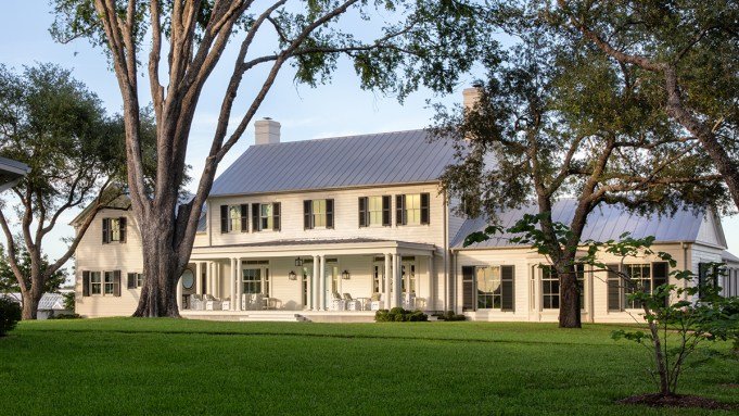 Caroline Bean of Compass holds the $29 million listing that lies about halfway between Austin and Houston with a guest house, pool, tennis court, and a vintage trailer.
