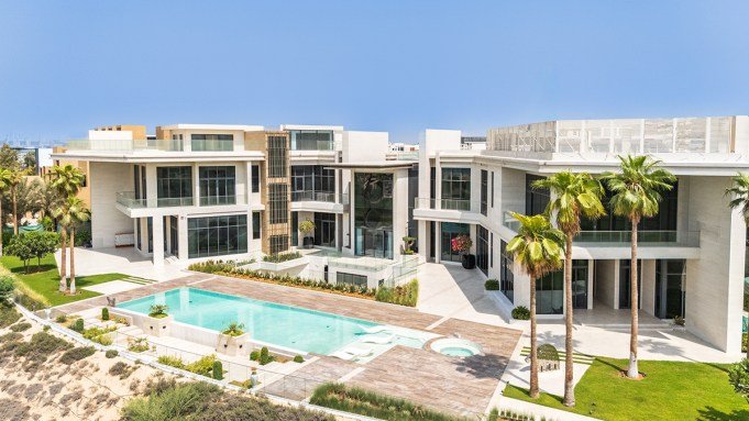 Listed with Savills for an eye-watering AED 265.335 million (about $72.24 million), the contemporary colossus contains eight principal bedrooms, including an expansive primary suite and two junior suites, along with extensive staff quarters. There’s a 10-car subterranean garage and a full suite of lifestyle amenities, from a private cinema and a cigar lounge to a gym, spa, and wellness area. For outdoor entertaining, there’s a temperature-controlled pool that can be cooled during the blazing hot summers, landscaped gardens, and a gazebo.