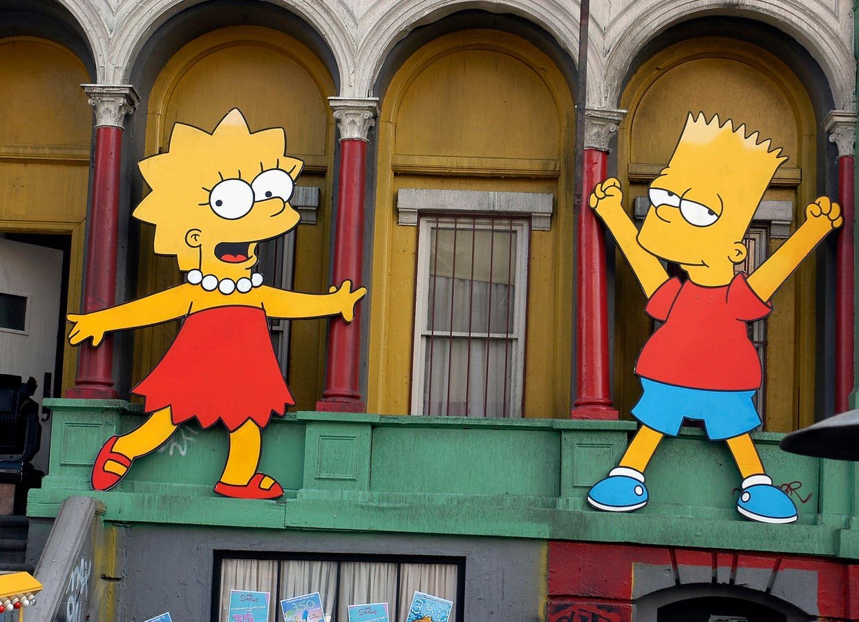 Lisa Simpson and Bart Simpson cut-outs on display at “The Simpsons” 350th episode block party on the New York street of Fox Pico Lot on April 25, 2005