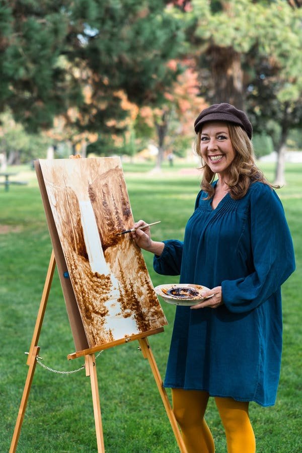 Eland often painted at a coffee shop in Tulsa, Oklahoma, where she was living at the time. “I was working on a watercolor at a friend’s coffee shop. I was bored,” said Eland. “I was just staring into space when I watched the espresso coming out of the machine. And I wondered if I could paint with it. Coffee is water based, so I thought it might be like painting watercolor.”