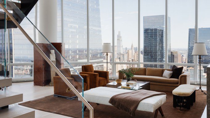New York’s notoriously sky-high real estate market means a home with sweeping views, a floating staircase, a double-sided fireplace, and a collection of designer-selected furnishings won’t come with anything resembling a bargain price. And for homebuyers who seek flawless interior design without any effort, there’s a high-floor duplex in Midtown Manhattan with interiors by expert Nate Berkus where everything’s already in place, down to the last throw pillow. Offered turnkey with all its furnishings, the condo is on the market for just under $23 million with The Corcoran Group.