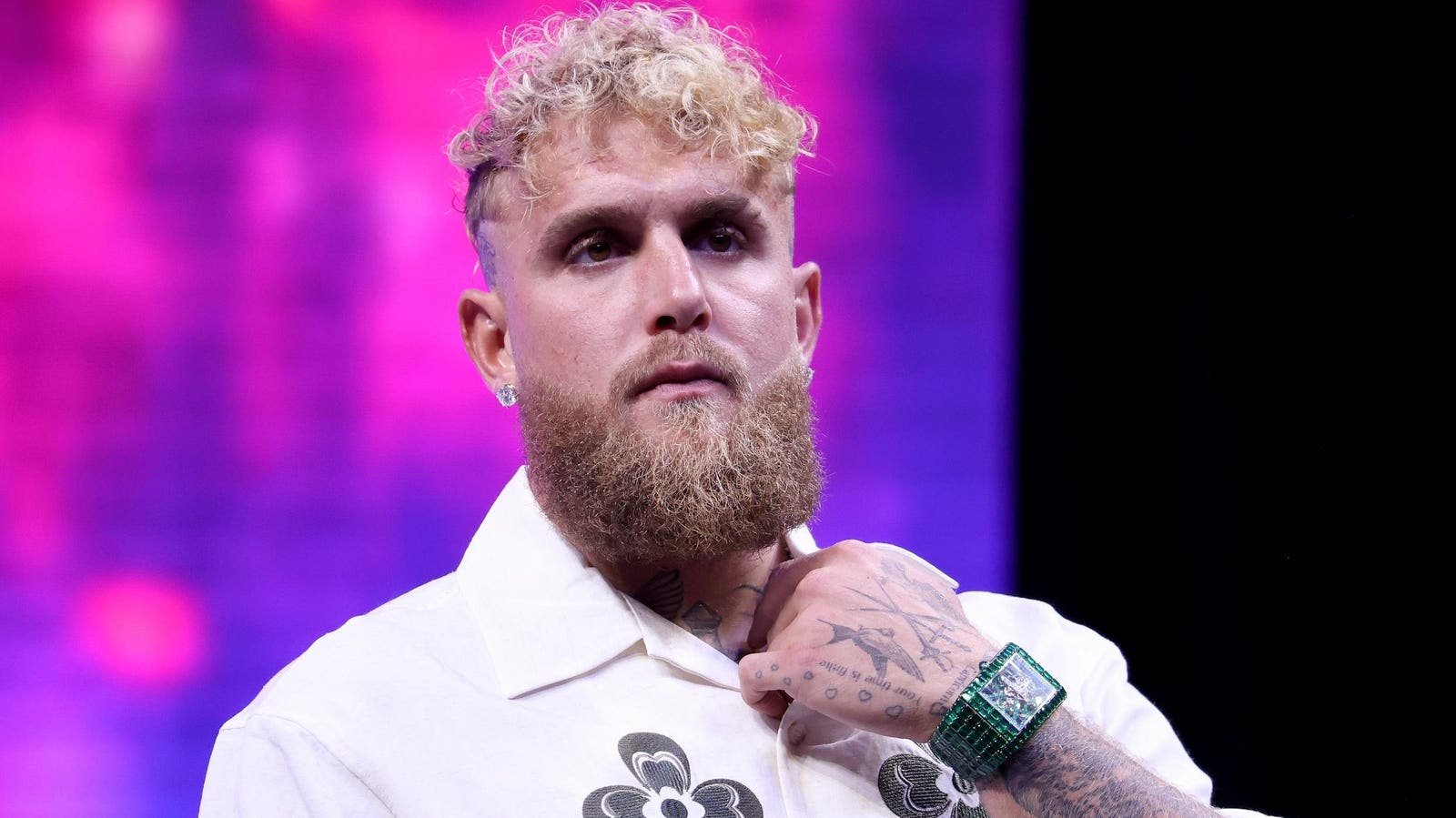 Jake Paul wears the Jacob & Co. Billionaire III,at a news conference on Sept. 23, 2025 in Miami, Florida.