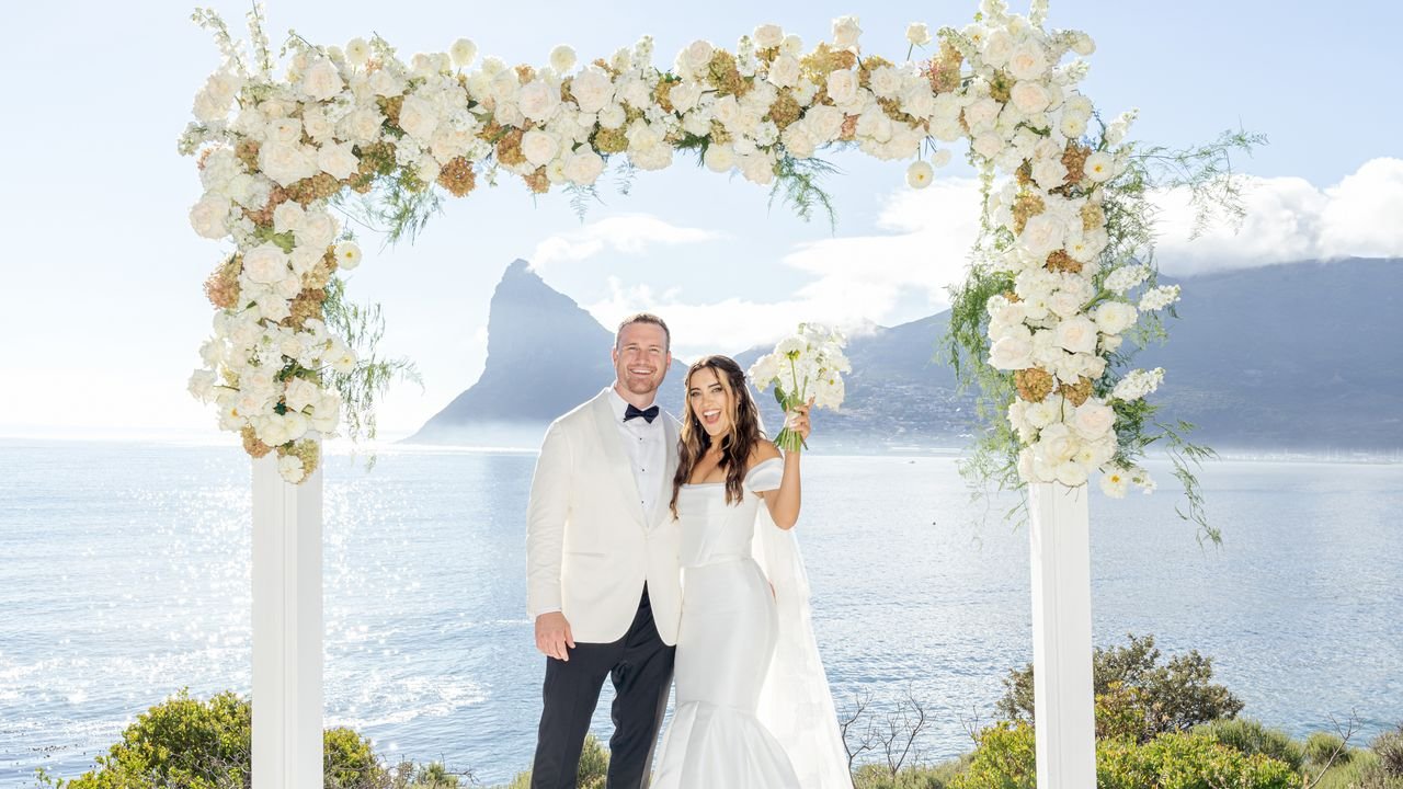 They worked with the Travel Cafe to make a custom two-week itinerary, which was sent to guests months ahead so people could opt in. In the days before the wedding, there were visits to Cape Point and the penguins on Boulders Beach, the winelands, and Table Mountain—excursions that were populated primarily by their guests who were new to South Africa. The agency pulled together shuttles and other private transportation, working through per-person budgets and giving the couple a lump sum to pay. A welcome party was then held at Constantia Royale Winery on Thursday evening. They left Friday entirely open for everyone to get their bearings before the wedding on Saturday, which was followed by a brunch on Sunday. Then, the newlyweds and 21 of their guests flew east for a few days of safari, plotting a stay together at the Lalibela Wildlife Reserve, before the couple finally set off alone for 10 days in the Maldives. It was a whole lot, they admit. “I lost my marbles for a bit there,” Jamie says.