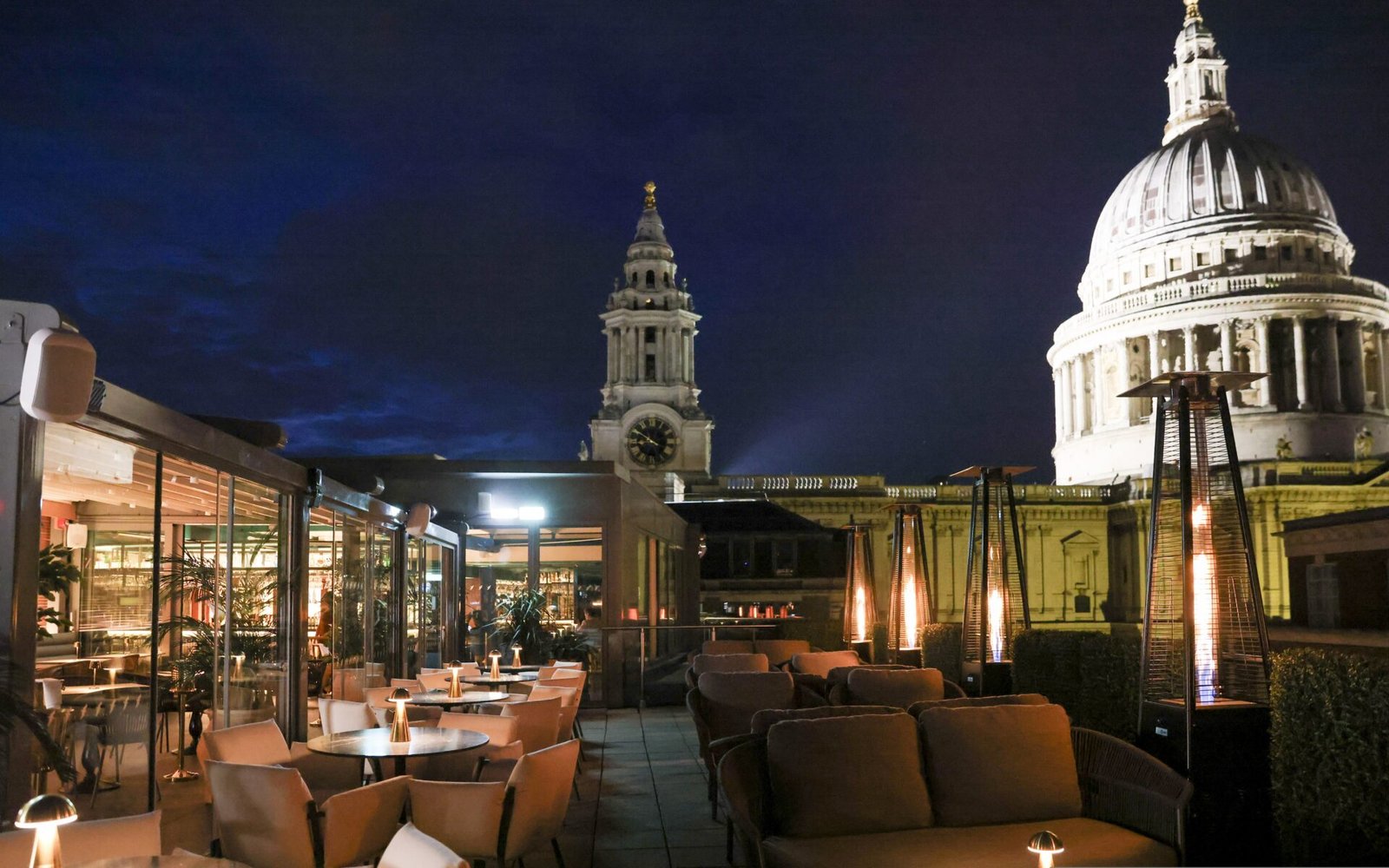 Inevitably, the first thing you notice is the view. St Paul’s Cathedral rises dramatically beside you, close enough to take in every curve of its dome—and, of course, to capture that perfect Instagram shot. The panorama stretches across the city, with the Shard and London’s evolving skyline filling the horizon. Whether bathed in daylight or glittering under evening skies, it’s a scene that never loses its impact.
